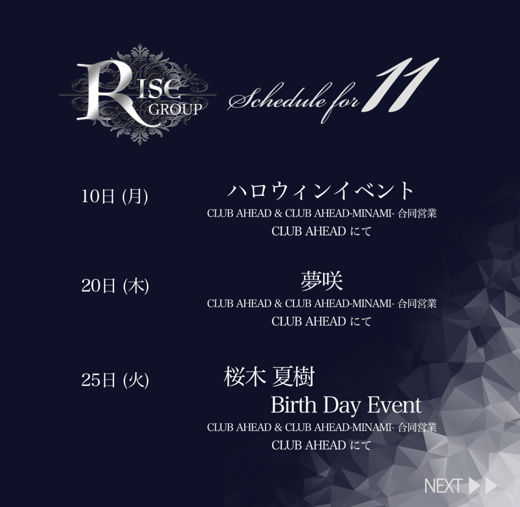 RISE GROUP今月の日程となります